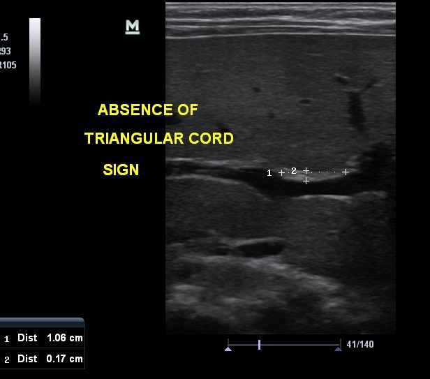 Absence of triangular cord sign (normal) :