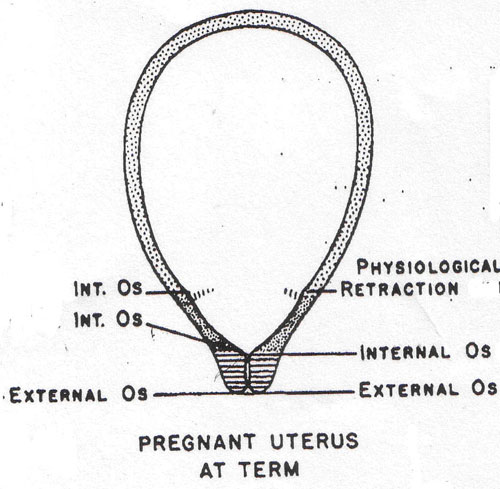 During pregnancy, the isthmus expands from a length of 0.5-1 cm to 2.5 cm at term to become the lower part of the uterine cavity, called the lower uterine segment. Development of the lower uterine segment begins at 28-30weeks gestation. The globular uterus sits on top of the lower uterine segment